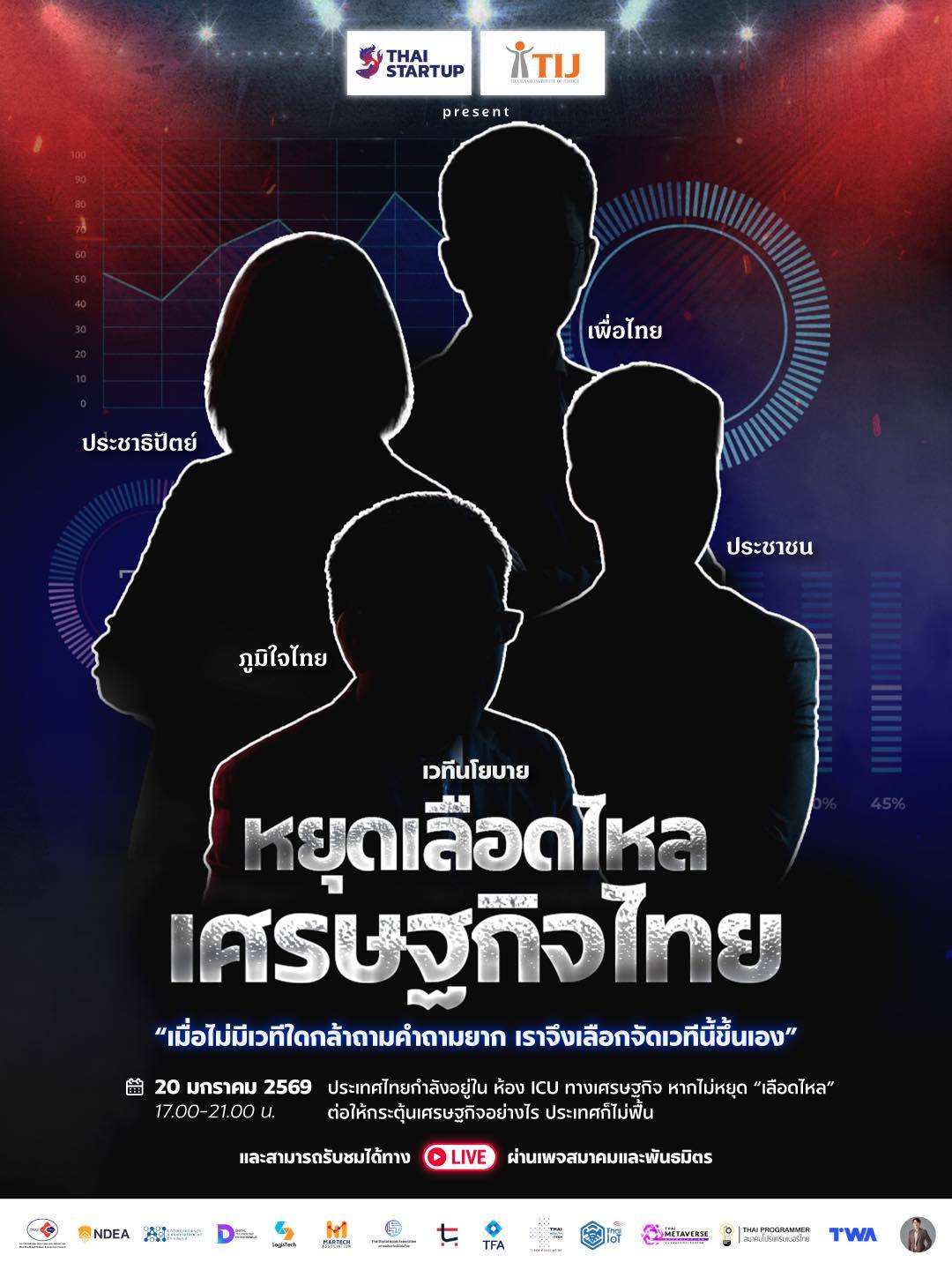 เวทีนี้ TIJ ร่วมมือกับ 13 สมาคมฯ จากสายเทคโนโลยี เอสเอ็มอี องค์กรเพื่อผู้บริโภค และ ThaiPBS ร่วม Live เสวนา พร้อมผู้ติดตามกว่า 5 แสนคน