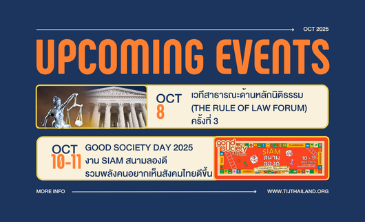 ตุลาคม 2568 8 ตุลาคม 2568 การประชุมเวทีสาธารณะด้านหลักนิติธรรม The Rule of Law Forum ครั้งที่ 3 ในหัวข้อ “Institutional Readiness for Thailand’s Competitiveness” จัดโดย TIJ ร่วมกับ The World Justice...