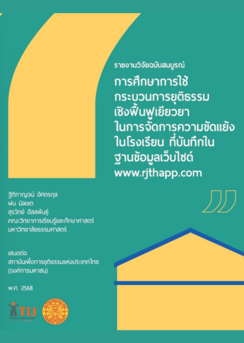 คู่มือการใช้กระบวนการยุติธรรมเชิงฟื้นฟูเยียวยาในสถานศึกษา เป็นผลงานจากความร่วมมือของสถาบันเพื่อการยุติธรรมแห่งประเทศไทย (TIJ) และคณะวิทยาการเรียนรู้และศึกษาศาสตร์ มหาวิทยาลัยธรรมศาสตร์ ที่นำเสนอแนวคิดและแนวปฏิบัติของกระบวนการยุติธรรมเชิงฟื้นฟูเยียวยาในบริบทโรงเรียนอย่างเป็นระบบ โดยมุ่งเปลี่ยนวิธีจัดการความขัดแย้งจากการลงโทษและการใช้วัฒนธรรมอำนาจนิยมในโรงเรียนมาเป็นการเยียวยาความเสียหาย ฟื้นฟูความสัมพันธ์ และปลูกฝังความรับผิดชอบร่วมกันในชุมชนการเรียนรู้ เนื้อหาครอบคลุมทั้งหลักการ วิธีคิด เครื่องมือ และกรณีศึกษาที่สามารถนำไปใช้ได้จริง ตั้งแต่ระดับห้องเรียนไปจนถึงการพัฒนากลไกทั้งระบบของโรงเรียน สถาบันฯ เชื่อมั่นว่า คู่มือนี้จะเป็นประโยชน์สำหรับครู ผู้บริหารสถานศึกษา และผู้ทำงานด้านการศึกษา ที่ต้องการสร้างโรงเรียนให้เป็นพื้นที่ปลอดภัย เคารพศักดิ์ศรีความเป็นมนุษย์ และเอื้อต่อการอยู่ร่วมกันอย่างสันติและยั่งยืน