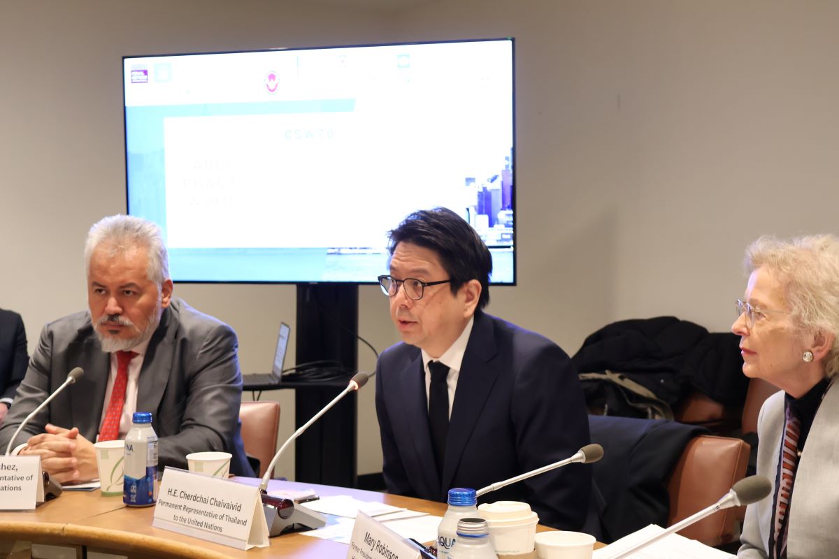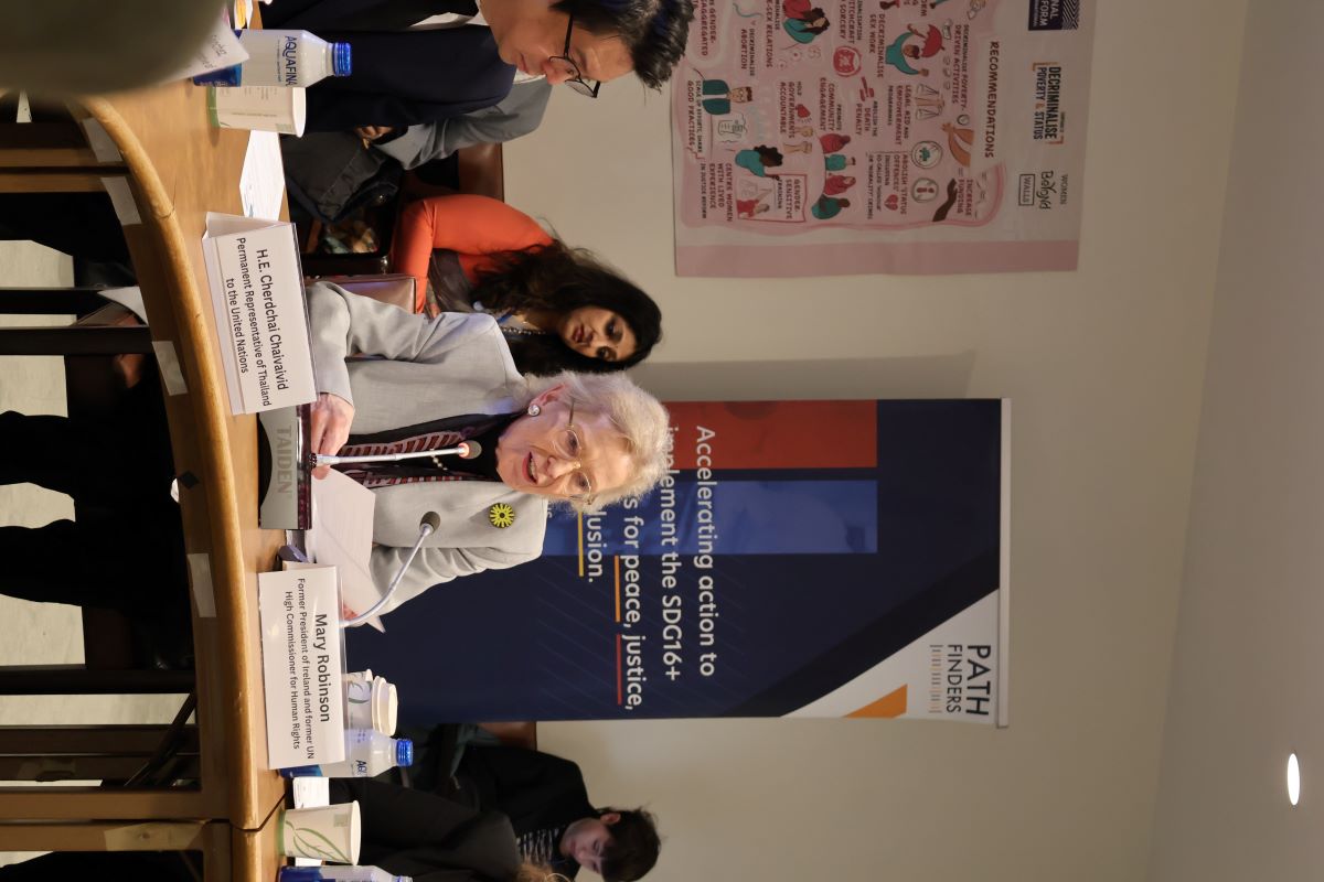 คำกล่าวโดย Mary Robinson อดีตประธานาธิบดีไอร์แลนด์ ในปาฐกถาพิเศษ ระหว่างการประชุมคู่ขนาน หัวข้อ “การทบทวนกฎหมายและแนวปฏิบัติที่นำไปสู่การเอาผิดทางอาญาต่อผู้หญิงจากความยากจนและสถานะทางสังคม” ซึ่งจัดขึ้นเมื่อวันพุธที่ 18 มีนาคม 2569 ในระหว่างการประชุมคณะกรรมาธิการว่าด้วยสถานภาพสตรี สมัยที่ 70 (CSW70) ณ นครนิวยอร์ก สหรัฐอเมริกา