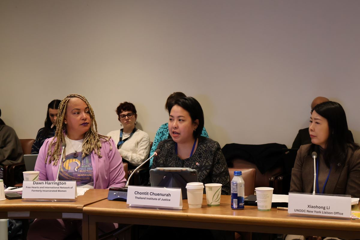 นอกจากนี้ ในช่วงการเสวนา ที่ประชุมได้เน้นย้ำถึงเส้นทางสู่เรือนจำของผู้ต้องขังหญิง ซึ่งมักเชื่อมโยงกับความเหลื่อมล้ำทางเศรษฐกิจและสังคม ความเปราะบาง และความคาดหวังทางเพศที่ถูกกำหนดโดยสังคม ตลอดจนผลกระทบที่ไม่สมส่วนที่ผู้หญิงต้องเผชิญเมื่อเข้าสู่กระบวนการยุติธรรมทางอาญา โดยมีผู้เชี่ยวชาญที่ร่วมเป็นวิทยากร ได้แก่ Dawn Harrington ผู้อำนวยการ Free Hearts และผู้อำนวยการโครงการพิเศษ National Council for Incarcerated and Formerly Incarcerated Women and Girls และ Xiaohong Li ผู้แทนสำนักงาน UNODC ณ นครนิวยอร์ก โดยมี Olivia Rope ผู้อำนวยการองค์กร PRI เป็นผู้ดำเนินรายการ
