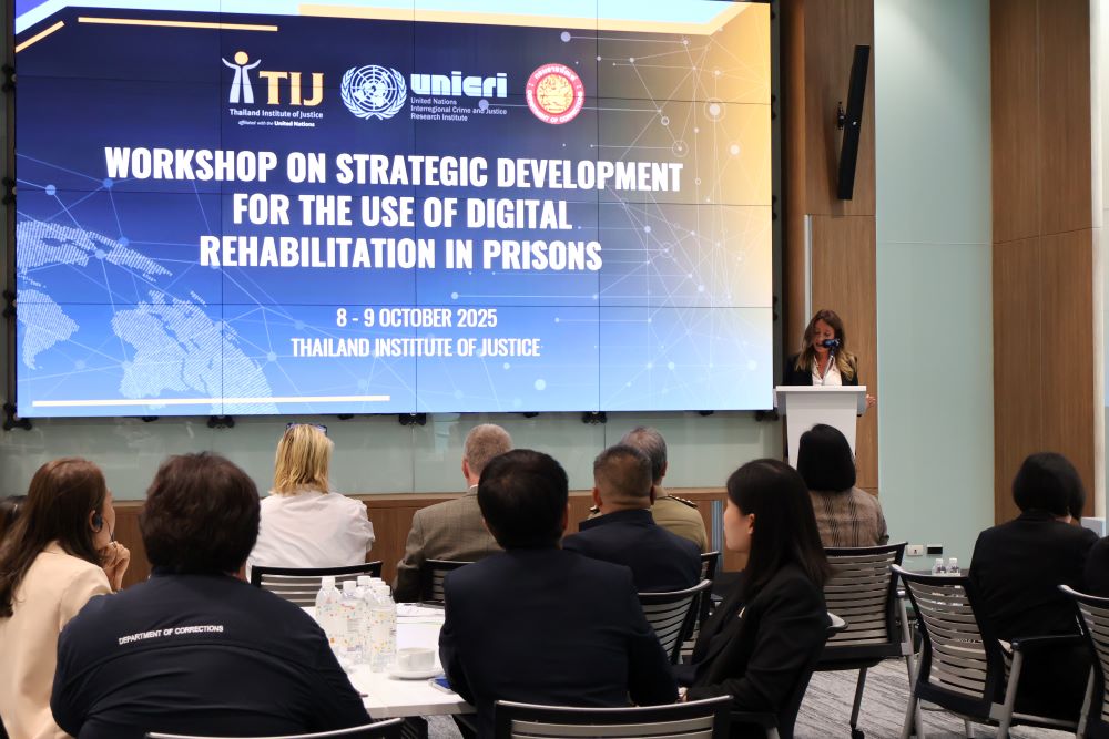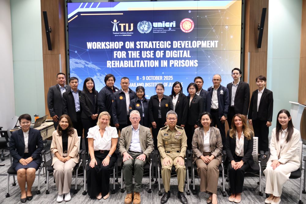 สถาบันเพื่อการยุติธรรมแห่งประเทศไทย (TIJ) ร่วมกับสถาบันวิจัยอาชญากรรมและความยุติธรรมระหว่างภูมิภาคแห่งสหประชาชาติ (UNICRI) จัดการประชุมเชิงปฏิบัติการว่าด้วยการพัฒนายุทธศาสตร์การใช้เทคโนโลยีในกระบวนการฟื้นฟูผู้ต้องขังของประเทศไทย (Workshop on Strategic Development for the Use of Digital Rehabilitation in Prisons) ระหว่างวันที่ 8 – 9 ตุลาคม 2568 ณ ห้อง Learning Studio 1 สถาบันเพื่อการยุติธรรมแห่งประเทศไทย โดยมีวัตถุประสงค์เพื่อแลกเปลี่ยนองค์ความรู้และประสบการณ์เกี่ยวกับยุทธศาสตร์การฟื้นฟูผู้ต้องขังด้วยเทคโนโลยีดิจิทัล และสนับสนุนการวางแผนเชิงยุทธศาสตร์ในการบูรณาการเทคโนโลยีเข้าสู่ระบบราชทัณฑ์ของไทยอย่างมีประสิทธิภาพในการบริหารจัดการเรือนจำและกระบวนการฟื้นฟูผู้ต้องขัง พร้อมเน้นย้ำถึงความจำเป็นของความร่วมมือจากทุกภาคส่วนและการใช้เทคโนโลยีเพื่อออกแบบโปรแกรมแก้ไขฟื้นฟูผู้ต้องขัง